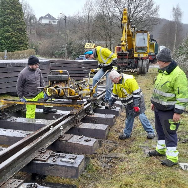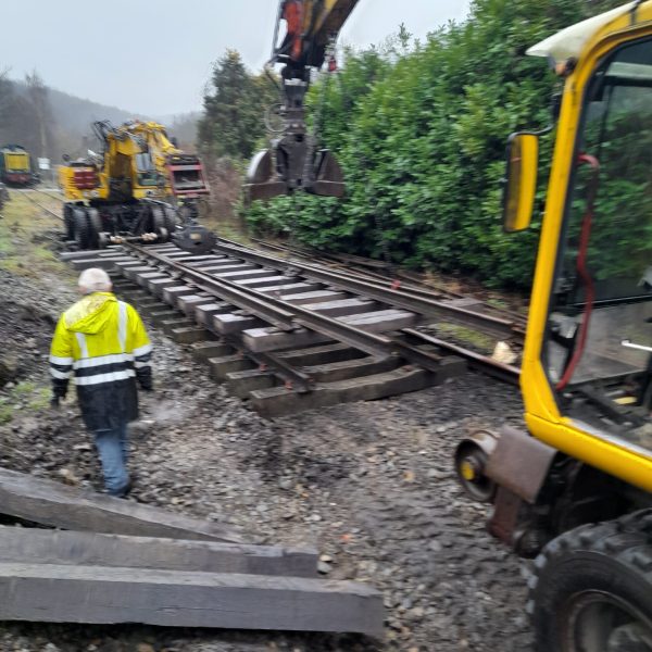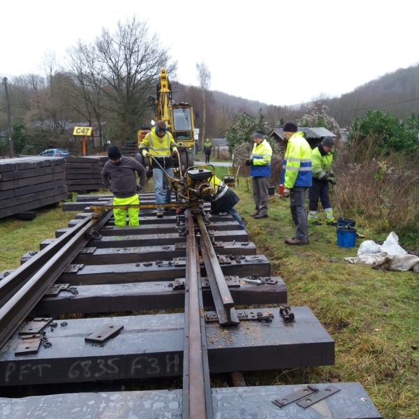 Début janvier, les travaux se sont poursuivis à Bauche sous une météo capricieuse. La petite équipe de bénévoles a procédé au montage et à la mise en place de la première partie de l’aiguillage d’entrée de Bauche.