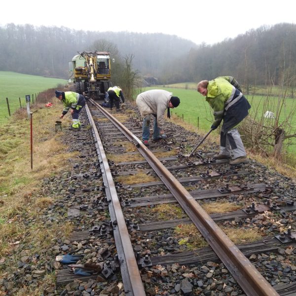 Le jeudi 23 février, les bénévoles ont commencé à inverser les rails dans la courbe de la E411. Il est ainsi possible de récupérer un profil de rail bien meilleur. Les travaux de maintenance dans la courbe se poursuivront dans les prochaines semaines.
