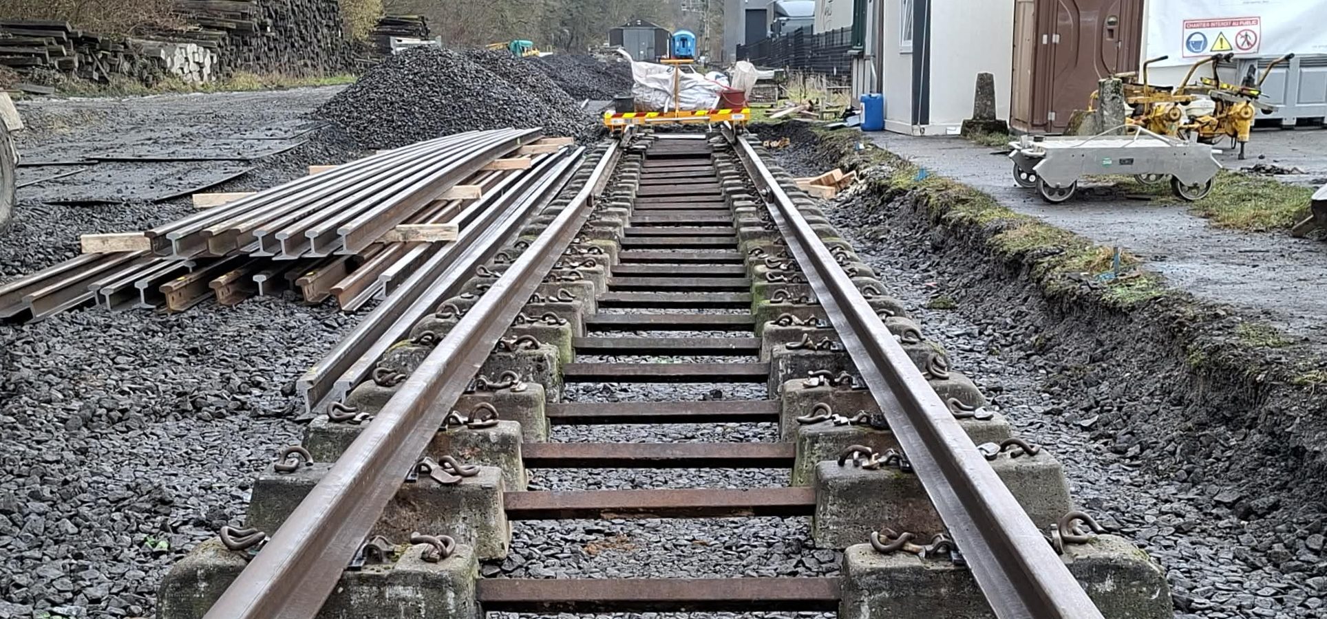 Depuis novembre 2025, parallèlement aux chantiers subsidiés, les bénévoles du PFT / Chemin de Fer du Bocq remplacent la totalité des traverses bi-blocs en béton (2 blocs de béton séparés d’une barre en métal) par des traverses monobloc en béton, nettement plus efficaces dans les courbes et plus résistantes à la force centrifuge appliquée lors de passage de train.
