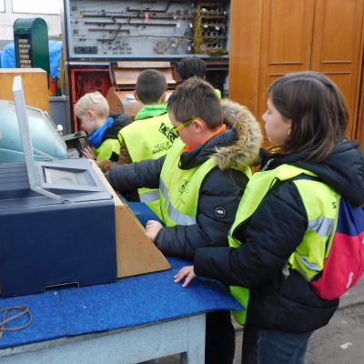 Drie groepen, in totaal 21 kinderen en 5 begeleiders, ontdekten eerst het museum, onder leiding van Marcel Vilain en Julien Casier, voordat ze werden ontvangen door Guy Stiévenart voor een bezoek aan de drie spoorweg netwerken van de modelbouwafdeling, die de kinderen echt fascineerde.