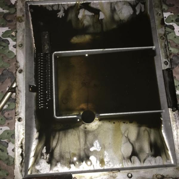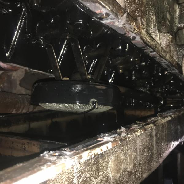 De behuizing van een van de twee motoren raakte beschadigd bij de aftapplug. Uiteraard was de vervuilde olie niet uit deze motor al verwijderd waardoor men eerst een dikke plakkerige modder moest verxwijderen waarna de motor volledig kon gereinigd worden en er een nieuw carter kon ingebouwd worden